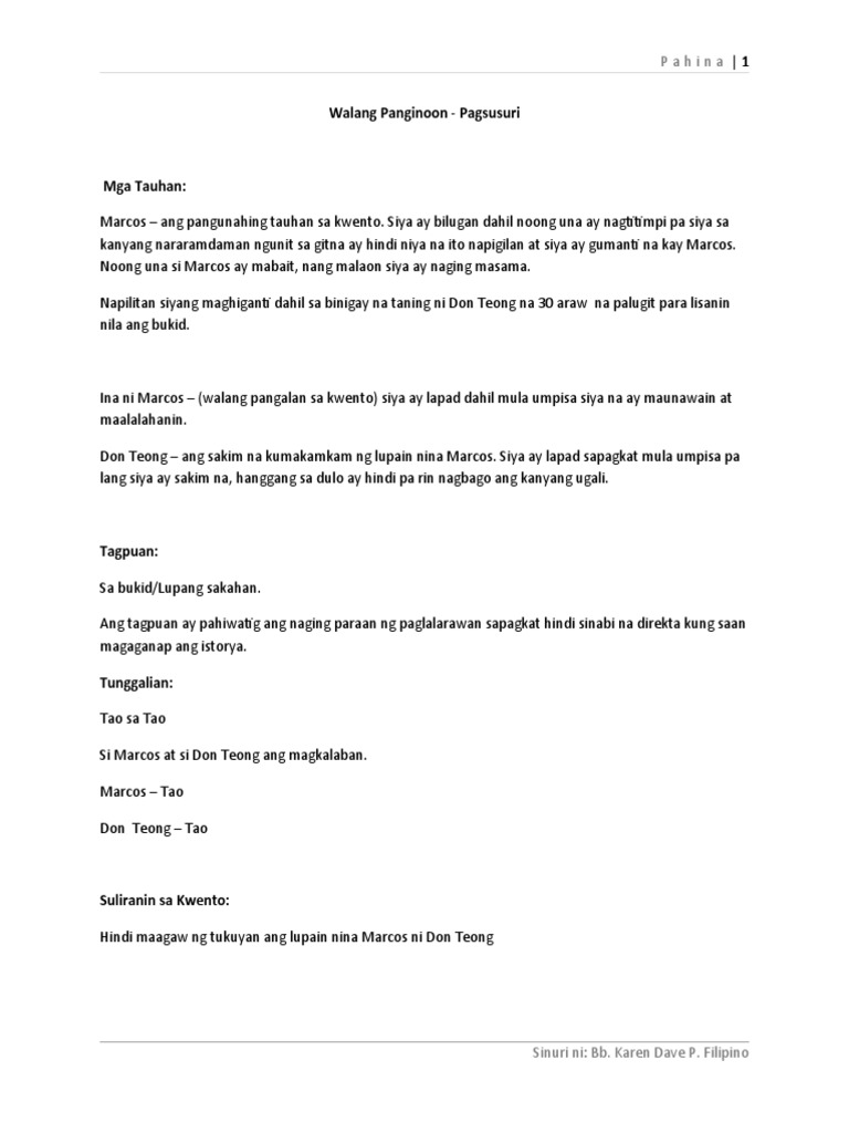 Pumanaw noong Agosto 5 1895 sa London England. Kung susuriing mabuti ang lubos na pinag-igting na suliranin sa maikling kwento na ito ay tungkol sa pag-agaw pagbuwis at paglisan mula sa saka. Kritikong Papel Walang Panginoon Ni G Rosario Pdf Kritikong Papel Walang Panginoon Ni Deogracias A Rosario Isang Pagsusuri Ni Frances Shane V Course Hero.